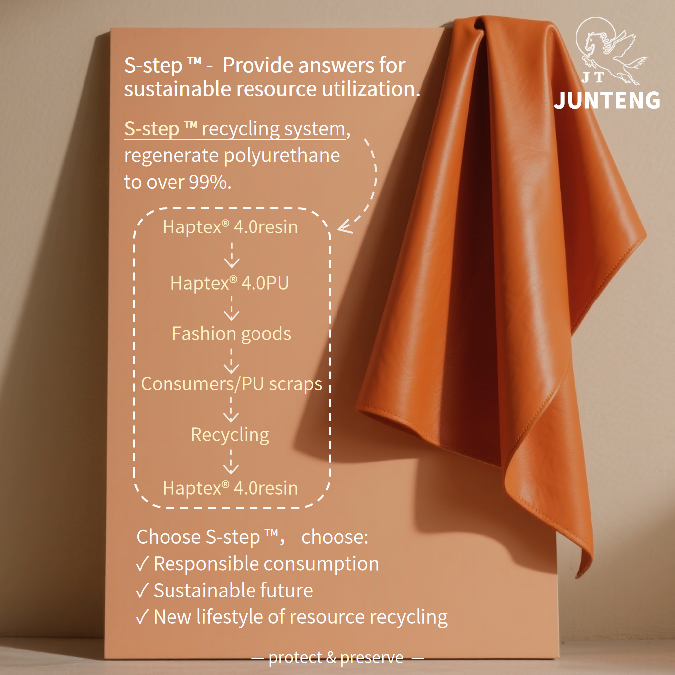 Polyurethane comes from limited oil resources. S-step™ recycling technology ensures every Haptex® synthetic leather product can be reborn as valuable raw material at the end of its lifecycle — with a 99%+ conversion rate.