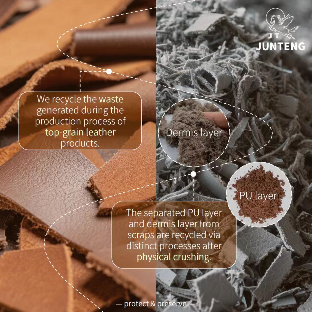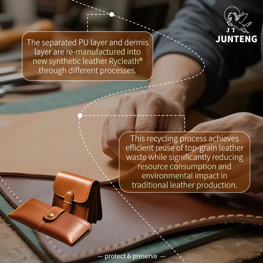 Through physical technology, PU and dermis layers are cleanly separated, transforming discarded materials into Rycleath® — giving waste a brand-new life.
